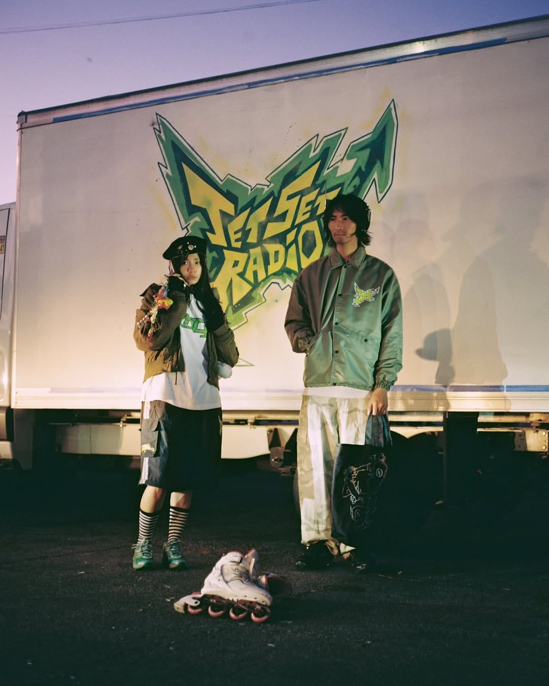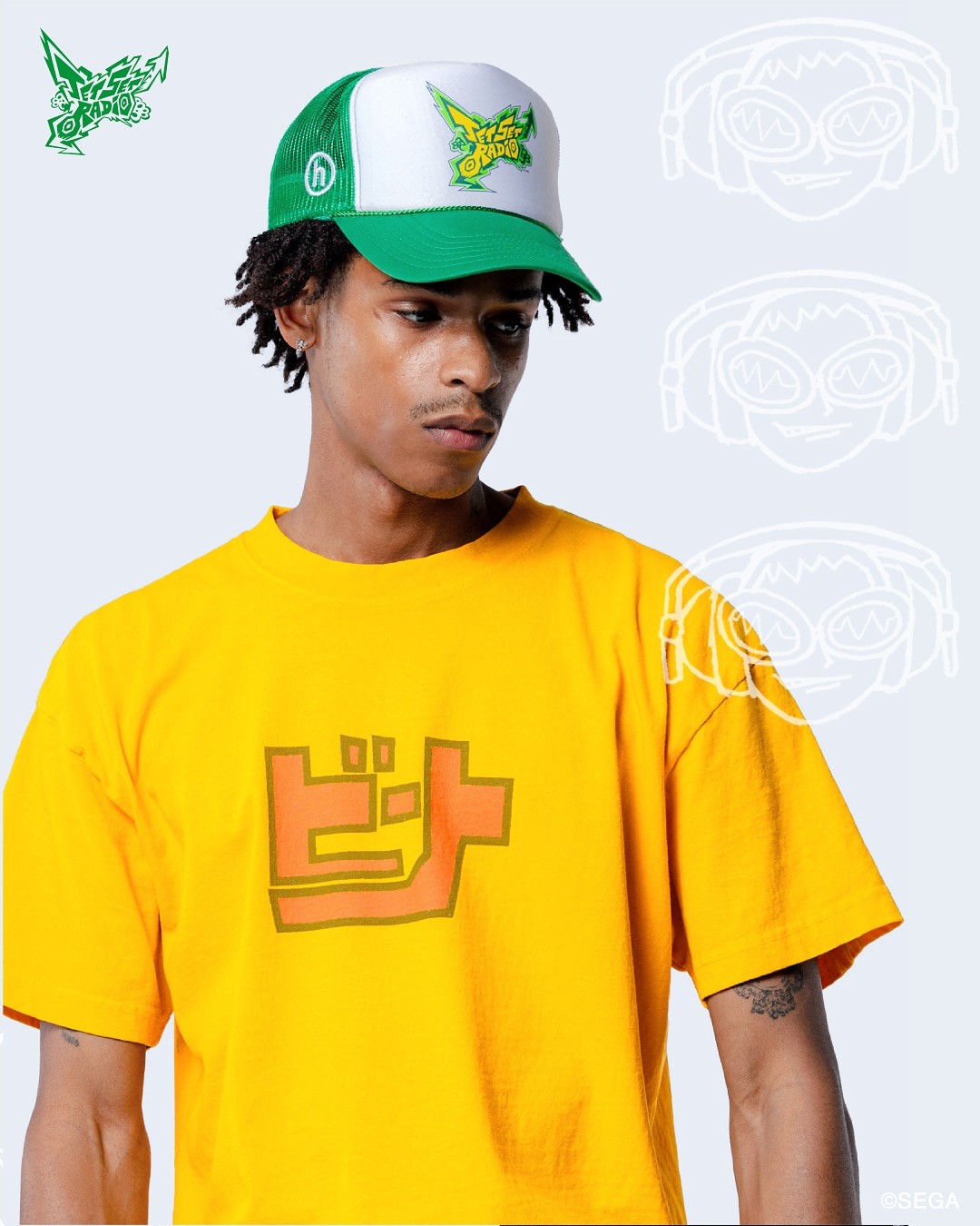 The graphic language of the collaborative collection draws mainly from the iconic logo designs of Sega and Jet Set Radio, but pays homage to the characters Beat, Gum, and Mew, who appear as the featured protagonists on one of the tees.