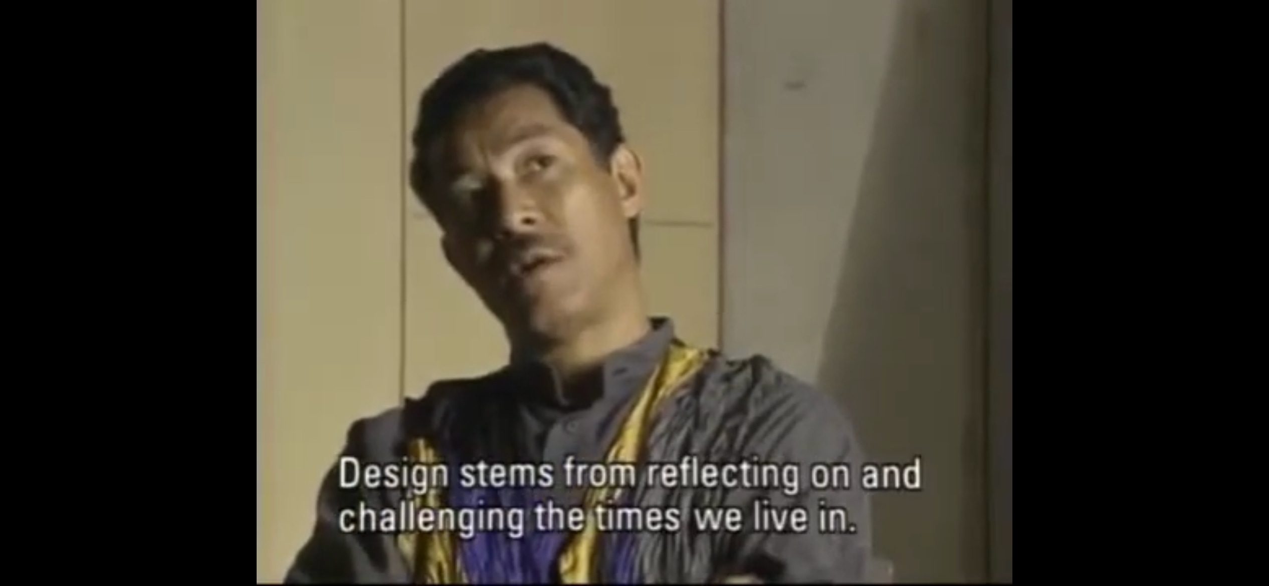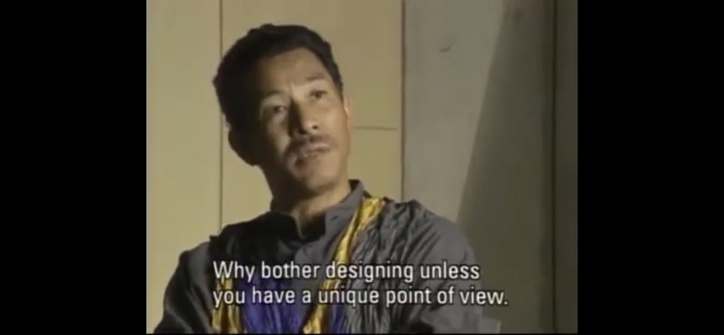 The quote in question comes from the documentary Issey Miyake Moves, originally broadcast on Japan’s Wowow Japan Satellite Broadcasting in 1993. In 2002, an English dubbed version was released—thankfully only translating the narrator’s voice while maintaining Miyake’s voice and his team members in their native Japanese.